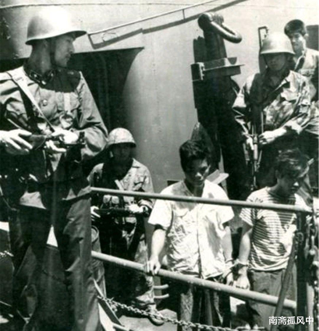 第三艘重创的越南船,正在缓缓下沉,几名越军士兵在甲板上绝望呼救。
