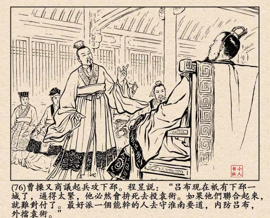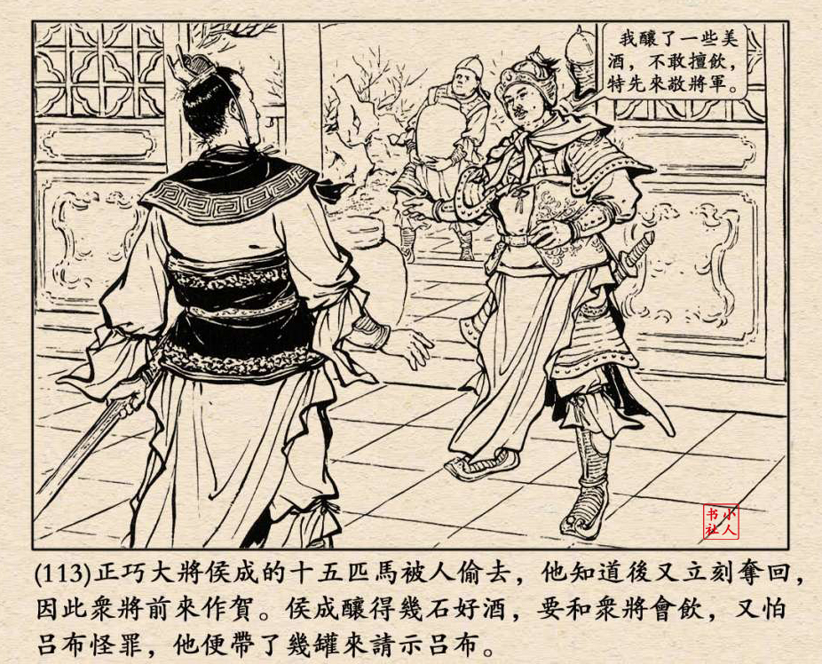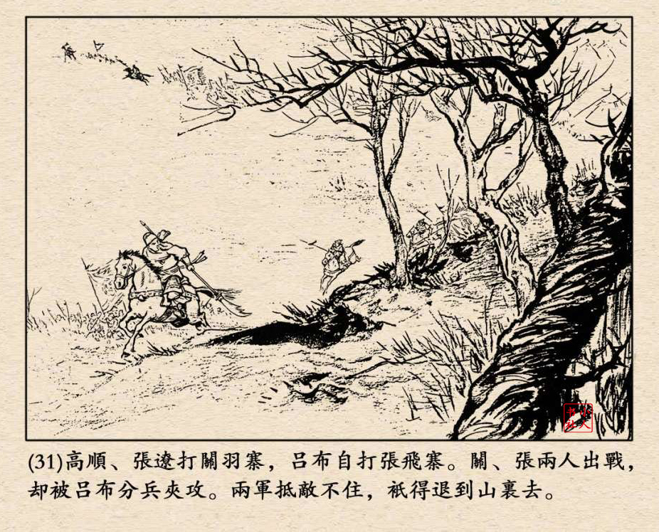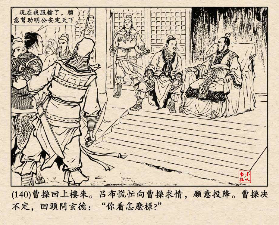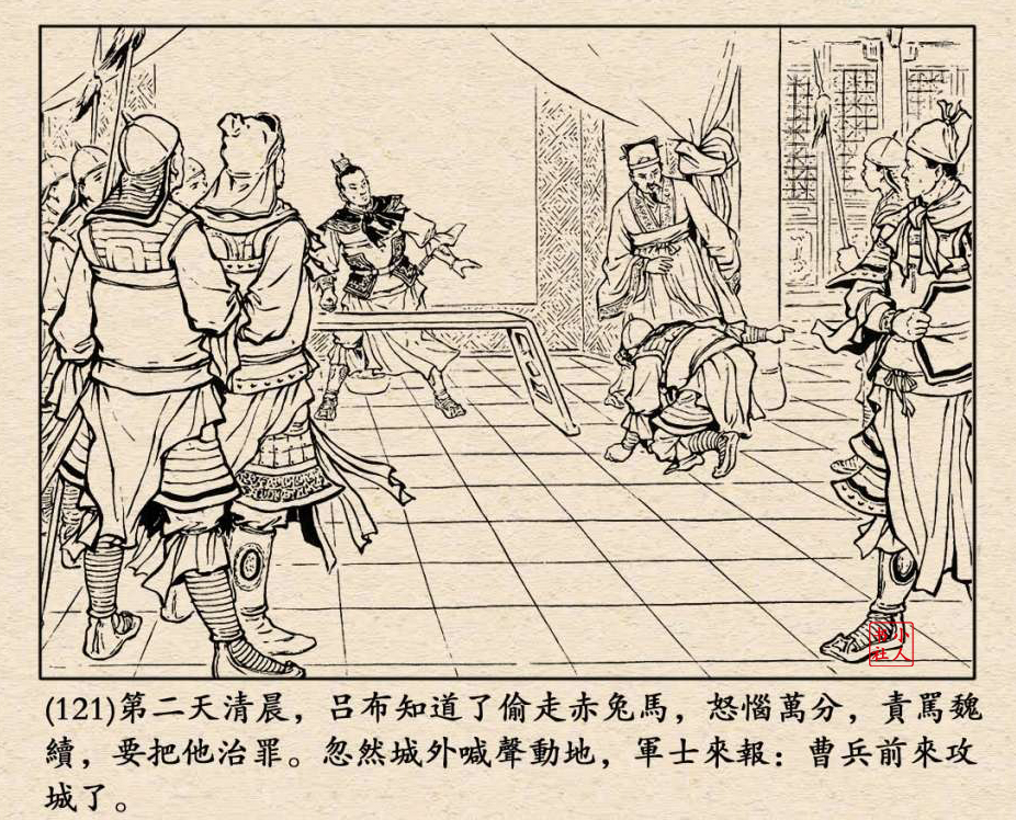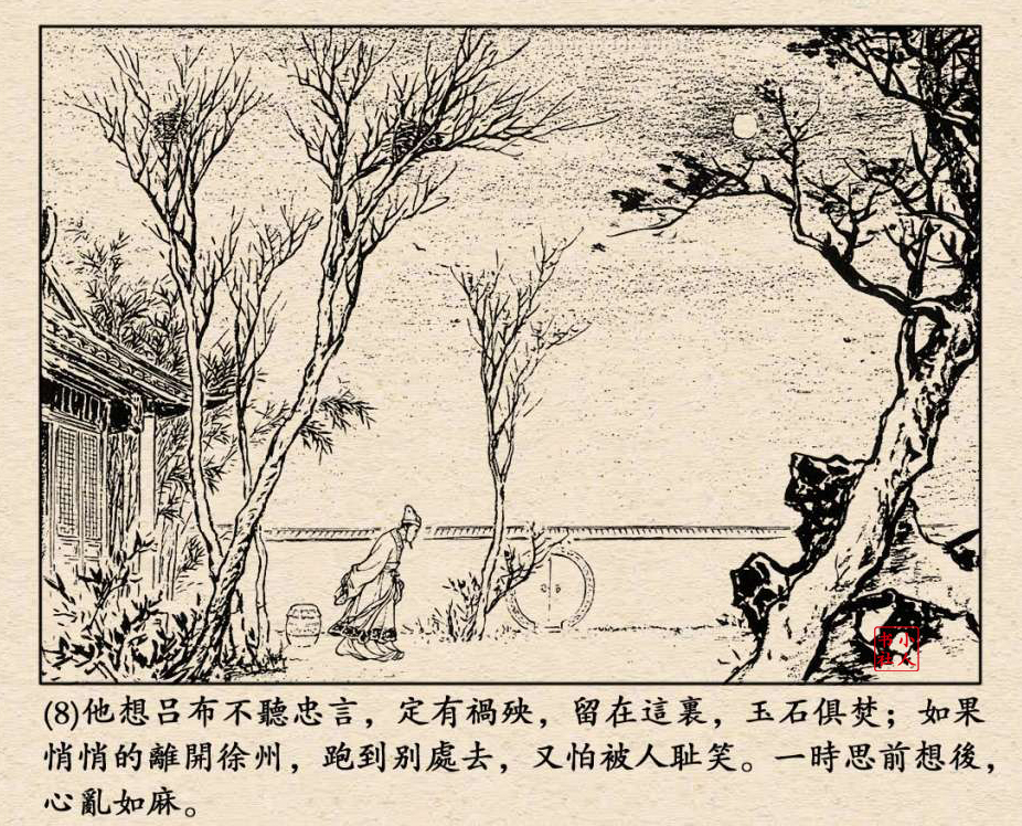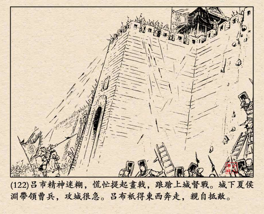 严谨细腻:人物造型精准,表情生动,尤其擅长刻画历史人物心理,如《白门楼》中吕布的萧瑟心境。