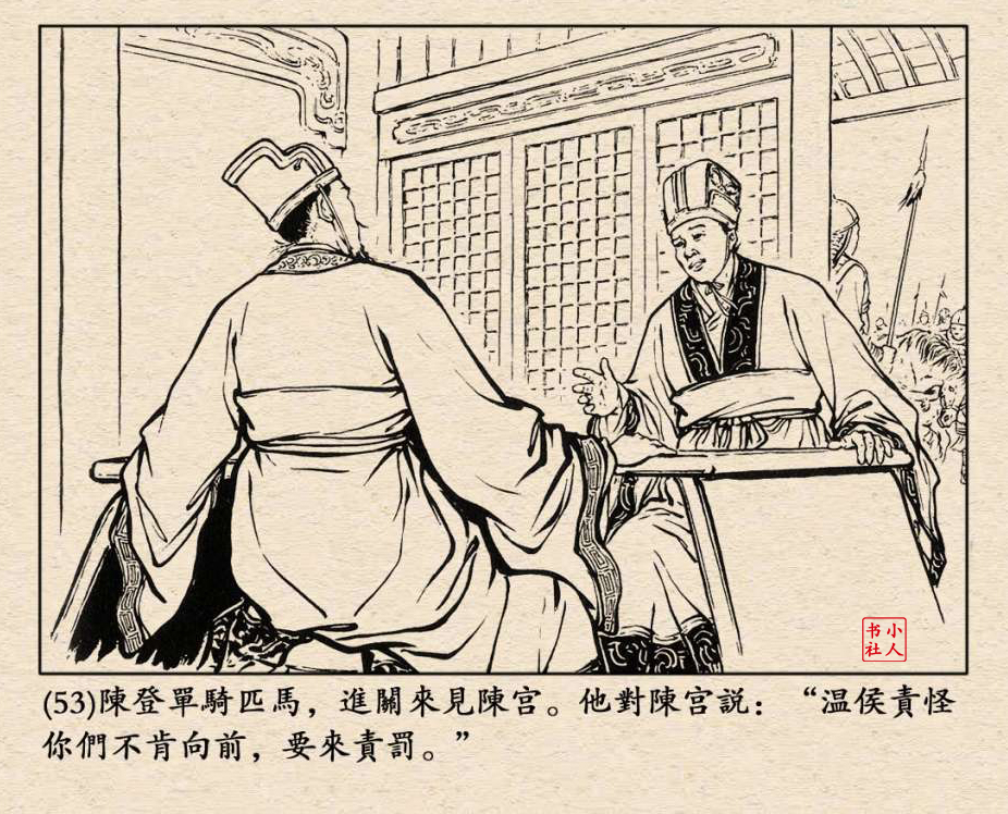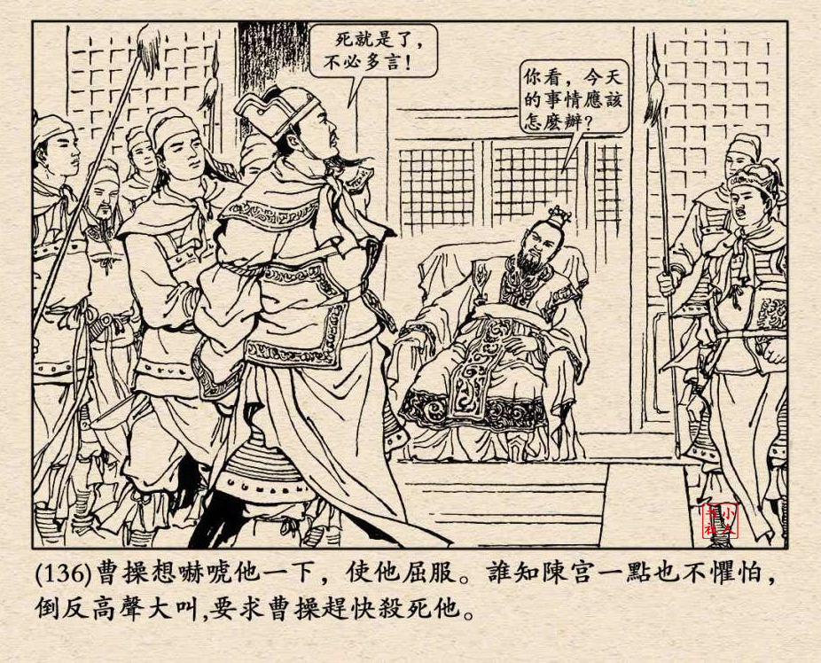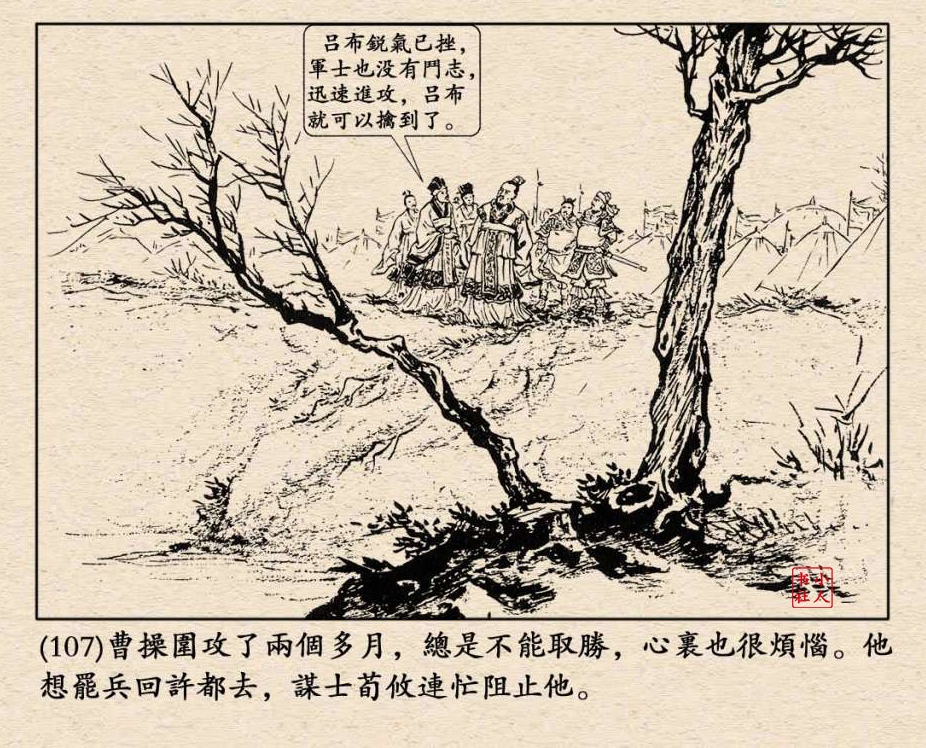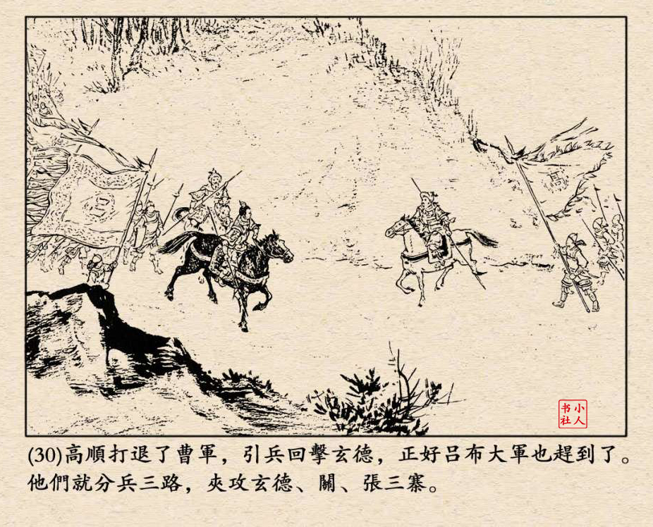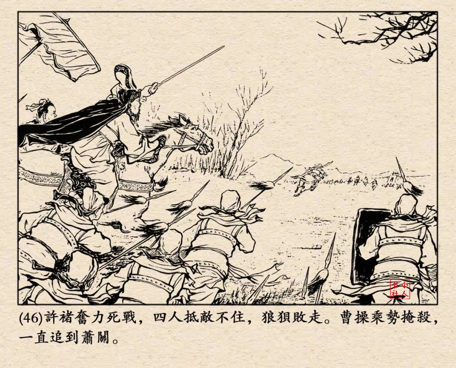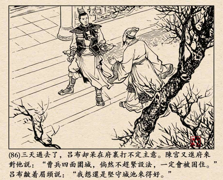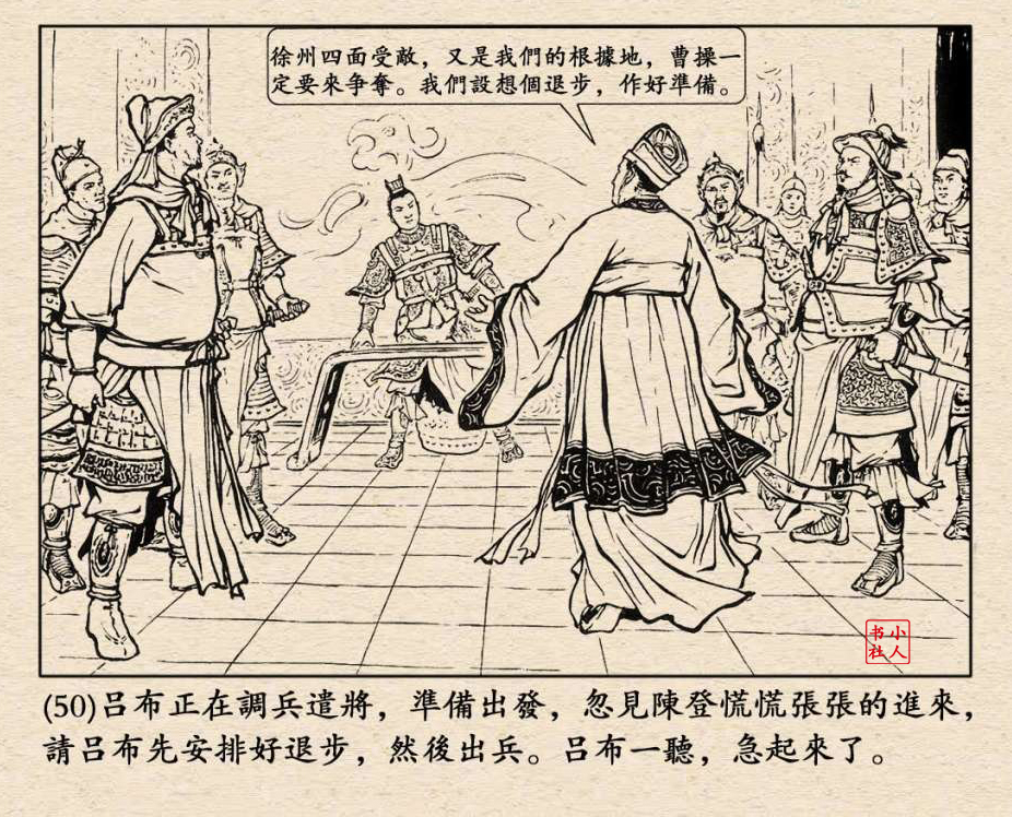 严谨细腻:人物造型精准,表情生动,尤其擅长刻画历史人物心理,如《白门楼》中吕布的萧瑟心境。