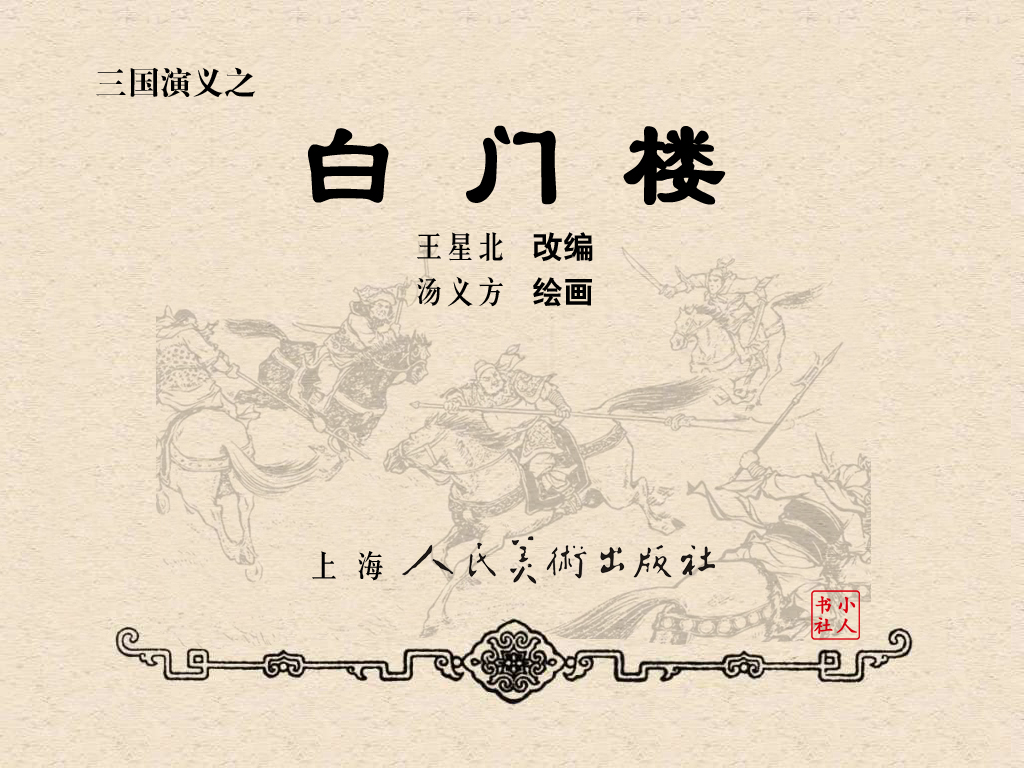 《白门楼》连环画是由王星北改编,汤义方绘画。故事讲述曹操联结陈珪父子为内应,袭取了徐州、小沛,把吕布包围在下邳城中。吕布迷恋妻妾,虐待士卒,众将怨恨,把他缚献曹操,被勒死在白门楼下。