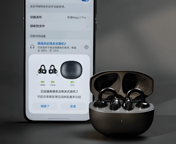 佩戴:耳机延续了品牌一贯的极简美学,采用纯白色包装设计,简洁中透出高级质感。耳机本体仅重约 4.5g,小巧轻盈,佩戴几乎无感。人体工学夹持结构让它稳稳贴合耳廓,既不夹耳也不易滑落。