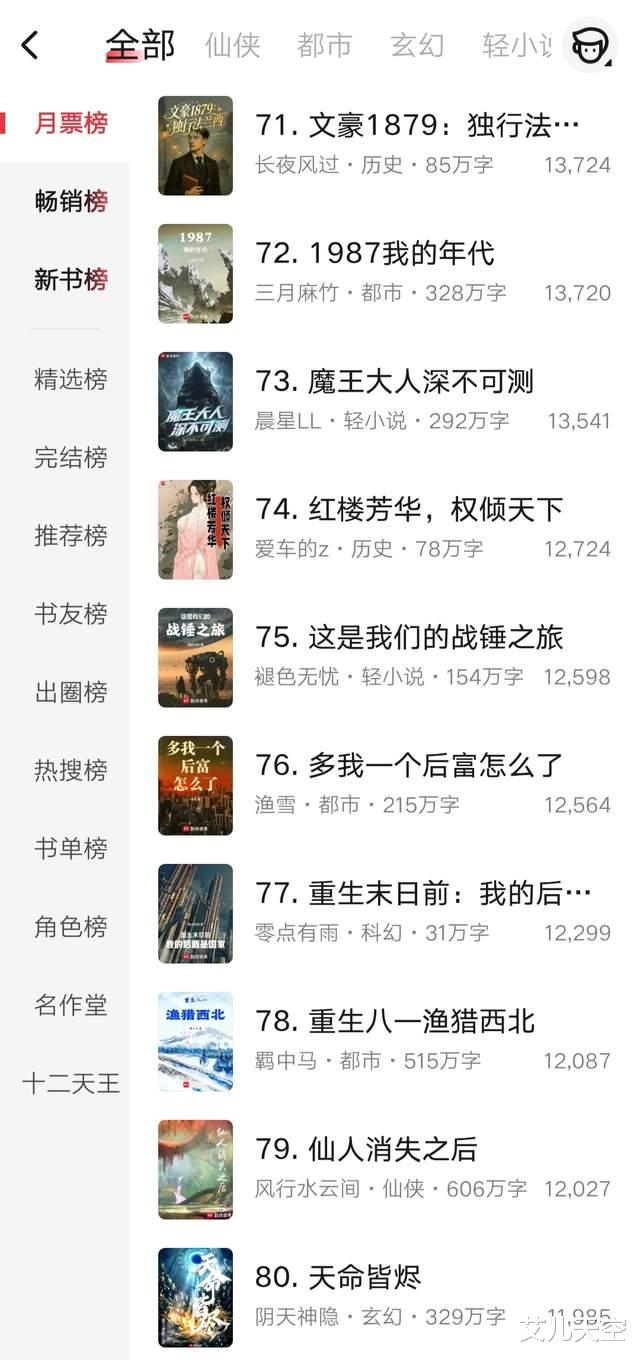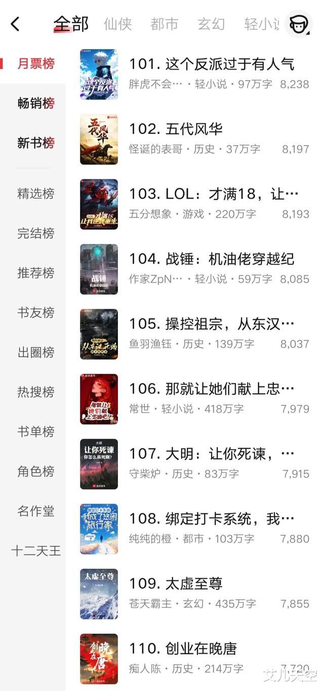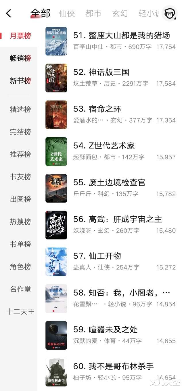 以上就是这周月票榜的一些情况了,简单记录一下,我们下期再见。