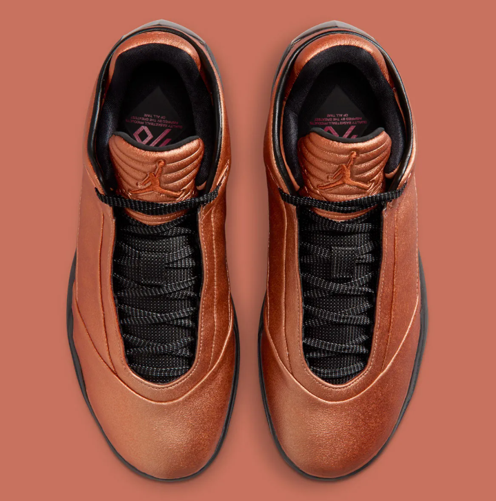 本文给大家带来的便是Air Jordan 40即将发售的全新配色——「Metallic Copper」,鞋履采用了极具金属材质风格的铜色元素进行设计,几乎充斥了整个鞋面;配合上黑色元素对于其内衬等部分的点缀,使得整个鞋履的色彩简洁明了,视觉观感简单清净,但是铜色元素吸睛程度又不落下风。