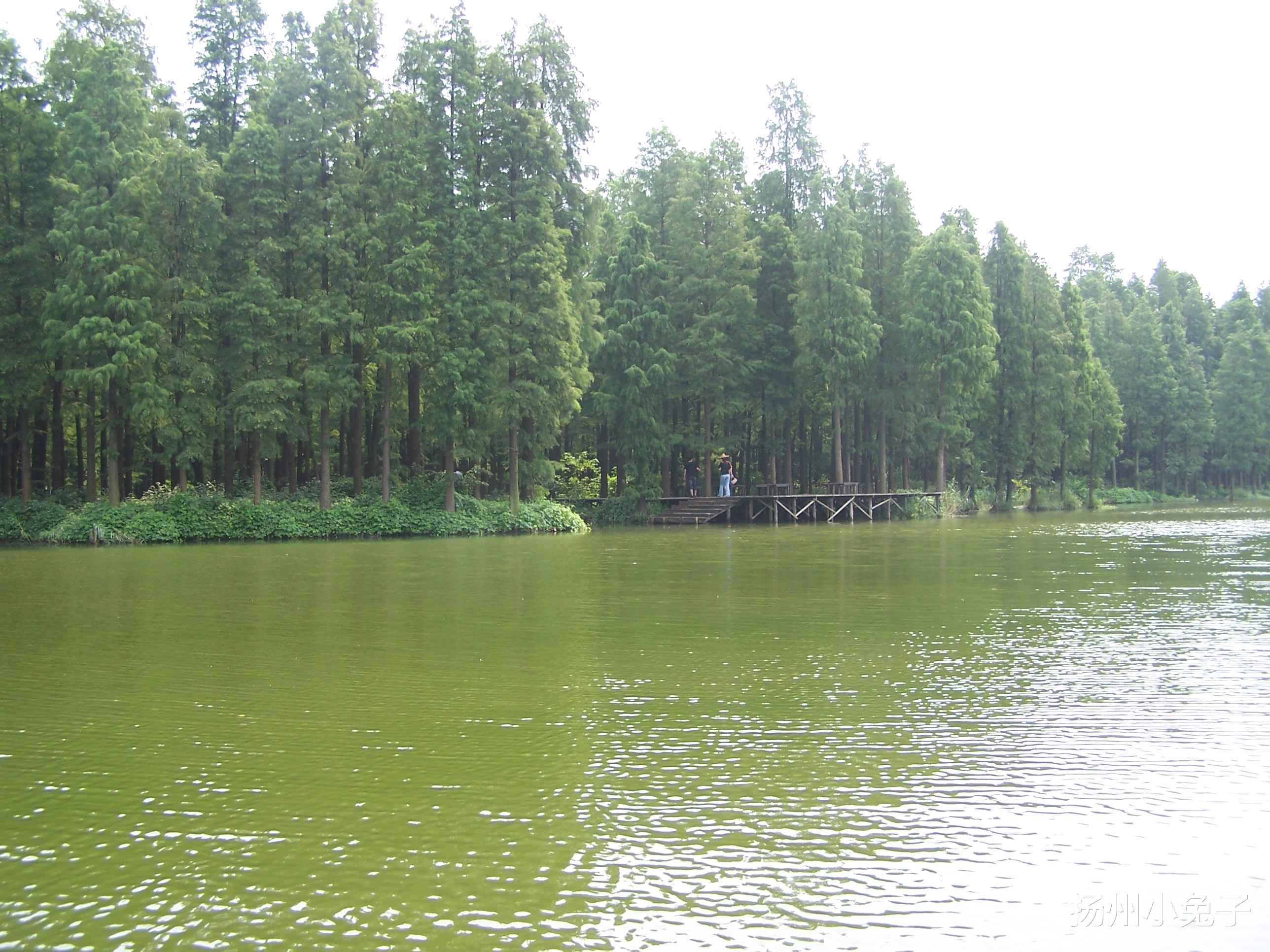 说起欣赏水上水杉树,邵伯的渌阳湖不能不提。那里成千上万棵水杉树,全部生长在水里。水面绿茵茵的,像“绿野仙踪”一般。行走在水面栈道,与一棵棵水杉树亲密相处。树干上有更大的惊喜在不经意处等着。大田螺排列着在某一棵树上晒太阳。小龙虾在水面翻腾,或者干脆到水与树交接的地方,刷刷存在感。