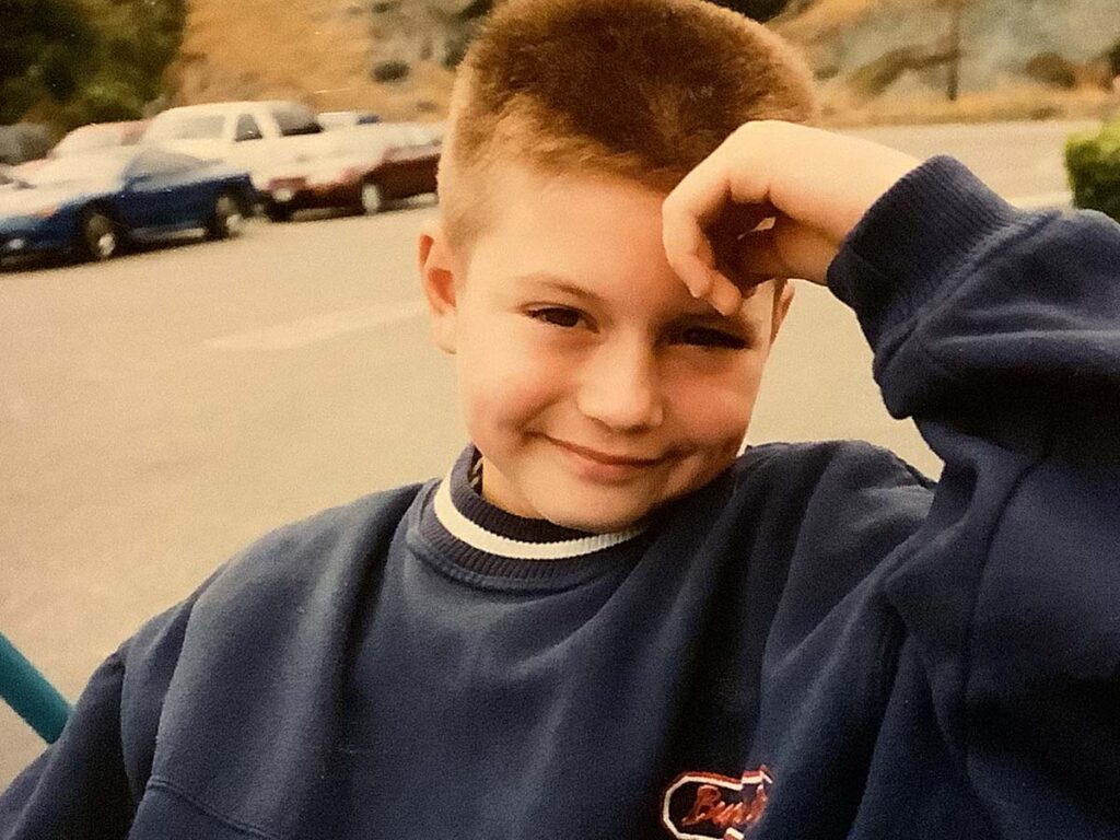 鲍勃在一次定期的探访中,拍下的罗宾儿子 尼克的照片,当时他们正在闲逛。尼克当时9岁,他和外祖父惊人的相似。