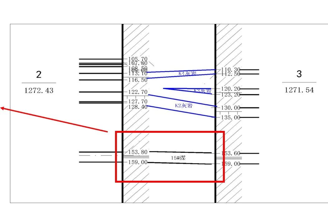 从衰减CT判断,裂隙发育区发育在靠近2,在采空区、松动区上部,埋深150-153m;水平展布在2-10m;电磁波衰减CT剖面中红色区,趋肤深度大于12m,衰减小,干燥岩体特征,裂隙发育,无水。