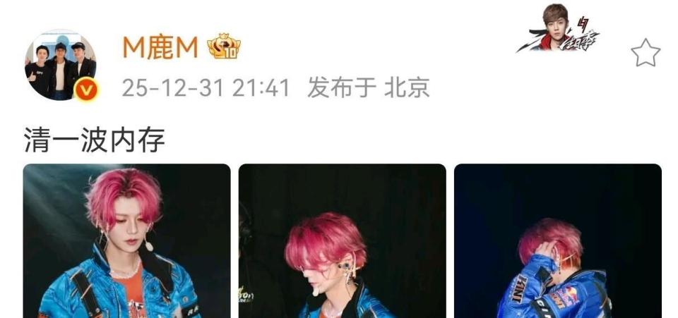 鹿晗的跨年回应在12月31日21:41开始,他分享了一组四巡演唱会的照片。 舞台上的他依旧帅气逼人,这组照片引发粉丝集体回忆。 关晓彤发布浙江卫视表演视频后不到半小时,鹿晗在23:34再次更新动态,又是四巡演唱会的库存照片,这次是不同角度的舞台镜头。 1月1日凌晨,鹿晗在社交平台发布新年祝福,简单的“新年快乐”四个字,配图是夜空中的烟花。
