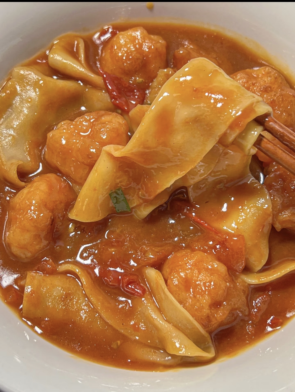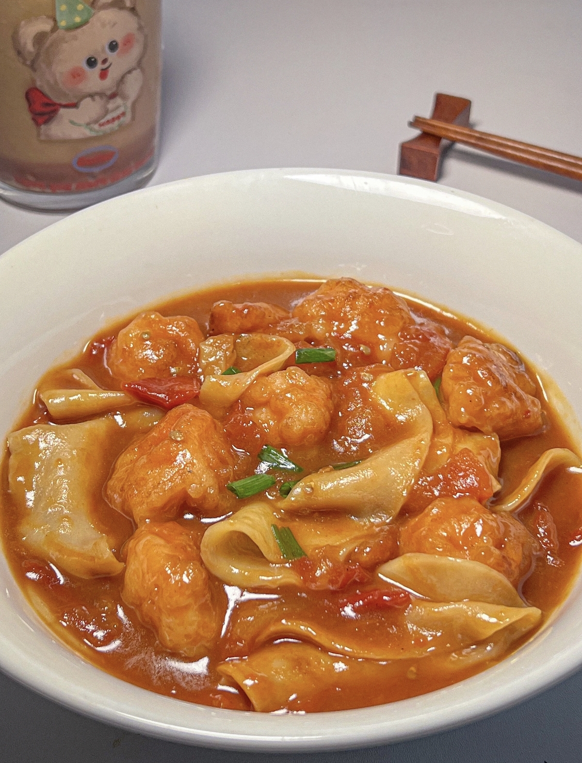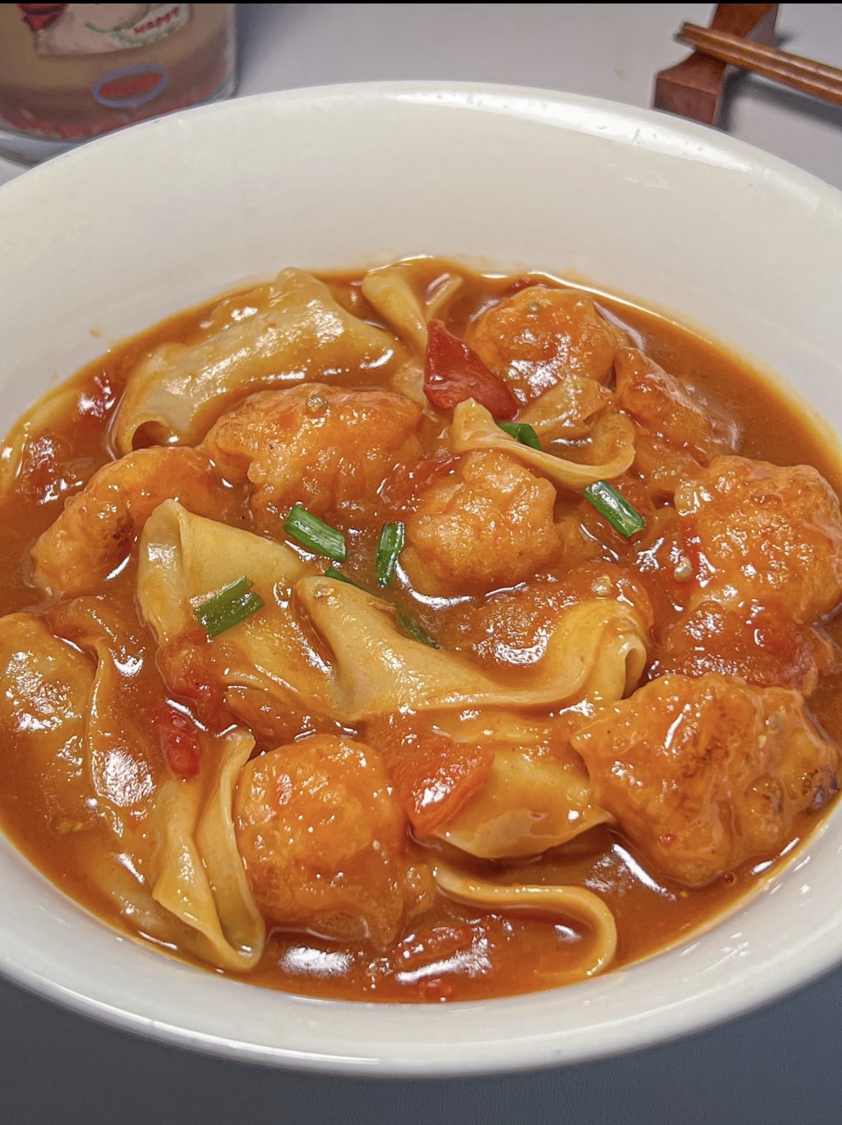 端上桌时,热气腾腾的面条上,番茄汤汁裹着每一根扯面,虾滑的鲜嫩与面条的软乎形成鲜明对比。夹一筷子送入口中,酸甜的汤汁在舌尖蔓延,面条的麦香与虾滑的弹嫩交织,幸福感瞬间涌上心头。这道家常菜没有昂贵的食材,却用最简单的组合,将温暖与美味融入日常。厨房里的烟火气,正是这样一碗面带来的踏实与满足,让人忍不住想跺脚欢呼,为这份平凡中的美好点赞。