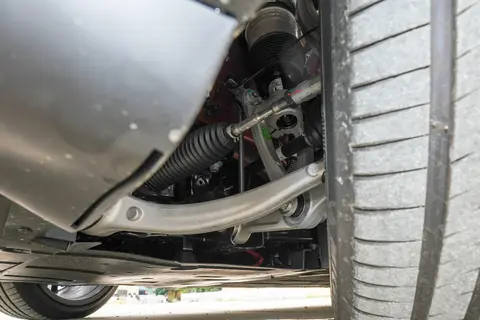 如果说动力是“快”,那云台智能底盘就是“稳”和“舒”的保障。星纪元ES的底盘配置堪称“越级”,前高阶双叉臂+后五连杆独立悬架、全铝合金架构、HDS液压隔振系统、6活塞固定卡钳,这些配置在百万级豪华车上都不一定齐全,却出现在了这台15万级的车型上。实际驾驶中,这套底盘的表现让人惊喜。在连续颠簸路段,前双叉臂悬架能迅速吸收震动,振动感降低30%,过减速带时的冲击感降低35%,传递到车内的只有沉闷而干脆的声响,车身没有多余的晃动。我特意开着它跑了一段乡下的坑洼路,HDS液压隔振系统发挥了很大作用,能有效隔绝低频振动,振动衰减能力提升25%,坐在后排的乘客也不会觉得颠簸。操控性方面同样出色,后五连杆独立悬架通过五根连杆对车轮进行精准控制,侧向支撑能力提升50%,扭矩转向抑制增强23.1%。在跑山路S弯时,车身侧倾非常小,方向盘指向精准,没有虚位,车尾的跟随性很好,真正做到了“指哪打哪”。而且全铝合金架构让底盘减轻了97公斤,簧下质量降低25%,不仅提升了操控性,还能降低能耗。