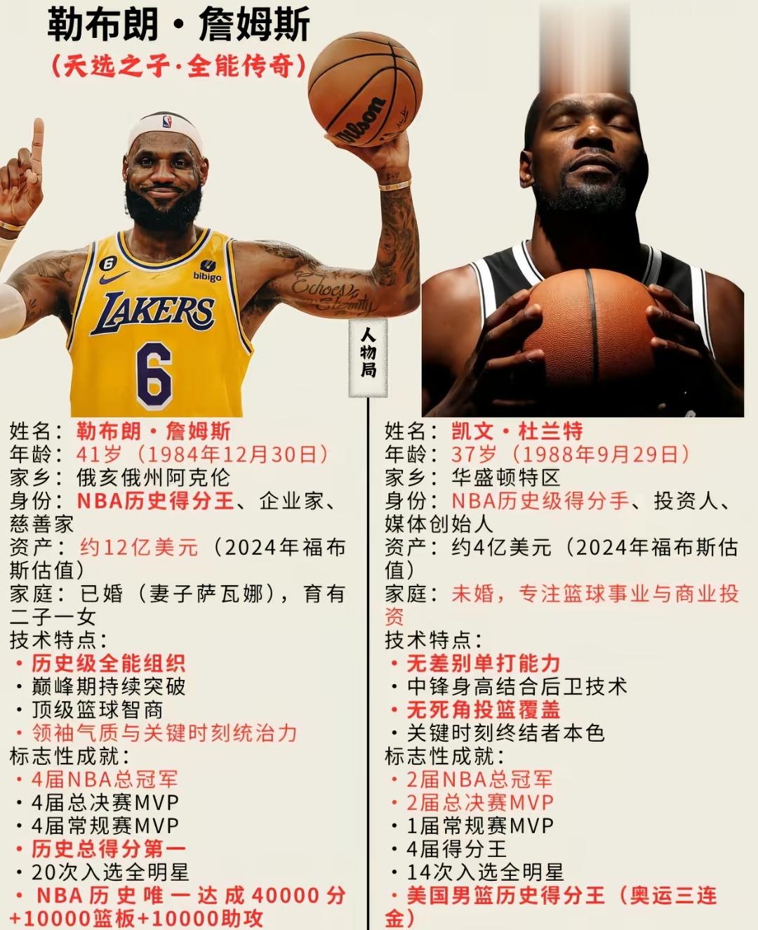 41岁的勒布朗·詹姆斯,职业生涯共获得4次NBA总冠军、4次总决赛MVP、4次常规赛MVP,历史得分王,NBA历史上,唯一达成40000分+10000篮板+10000助攻的球员。