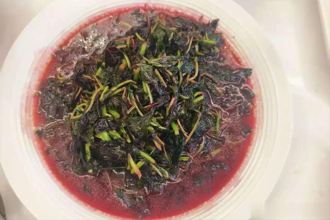 这样炒出来的红苋菜,汤汁鲜红,带有独特的香味,而且营养丰富,陈佳瑜特别喜欢用汤汁浇在白米饭上,吃起来非常美味。