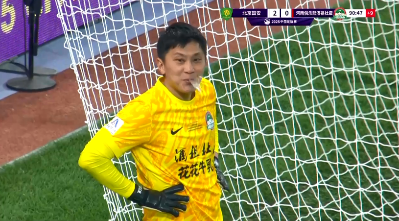 亮了!河南队门将无奈吐水苦笑,足协杯决赛:北京国安哀兵夺冠