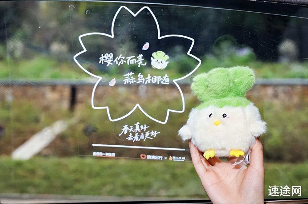 图组为:用户可在滴滴赏花保障车队车内领取限量周边、香卡