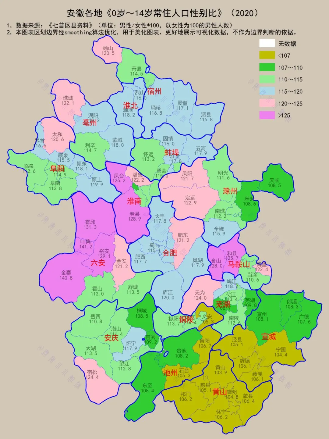 2020年安徽各地0-14岁常住人口性别比数据,揭示了这个人口大省未来十年面临的婚恋格局。这张地图不仅是数字的集合,更是观察社会变迁的重要窗口。
