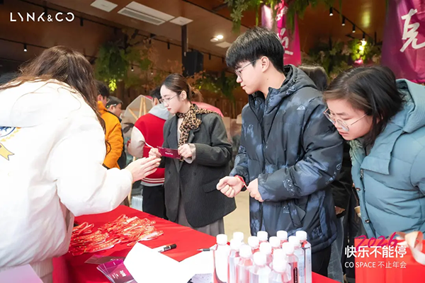 午后时分,领克车主年会现场已洋溢着热闹的氛围。签到处前,工作人员早已备好专属手环与抽奖券,细致引导每一位车主完成签到流程,并用镜头定格下车主与爱车的同框瞬间。印有“Lynk在一起”的签名墙前,大家纷纷留下个性签名与新年祝福,熟悉的车友热情寒暄,让每一位到场者都感受到满满的仪式感与归属感。
