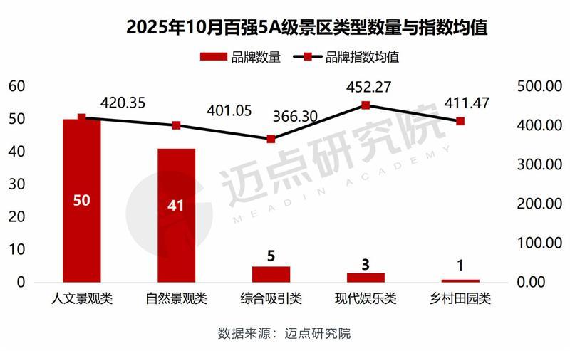 “2025年10月5A级景区品牌传播力100强榜单”数据来源于迈点品牌指数MBI,根据10月迈点品牌指数MBI的359家景区数据汇总统计而成。具体说明如下: