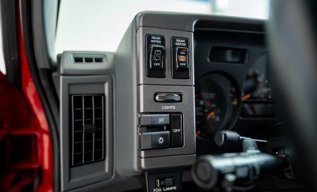 咱们再来看看其中一台特别的Typhoon。这是一台苹果红色的车,就像一团燃烧的火焰。它的总里程表定格在688英里,这个里程数对于一辆车来说是非常少的。你想啊,一般的车可能都跑了好多万公里了,它才这么点儿里程,就像一个刚出门没走多远的旅行者。而且啊,它的车漆与同色运动包围毫无氧化痕迹,这就好比是一个精心保养的美人,岁月似乎在它身上没有留下任何痕迹。再看原厂16英寸涡轮造型轮毂上的Firestone轮胎,甚至保留着1990年代的胎毛。这胎毛就像是岁月的标记,见证了它从诞生到现在的一段特殊历程。