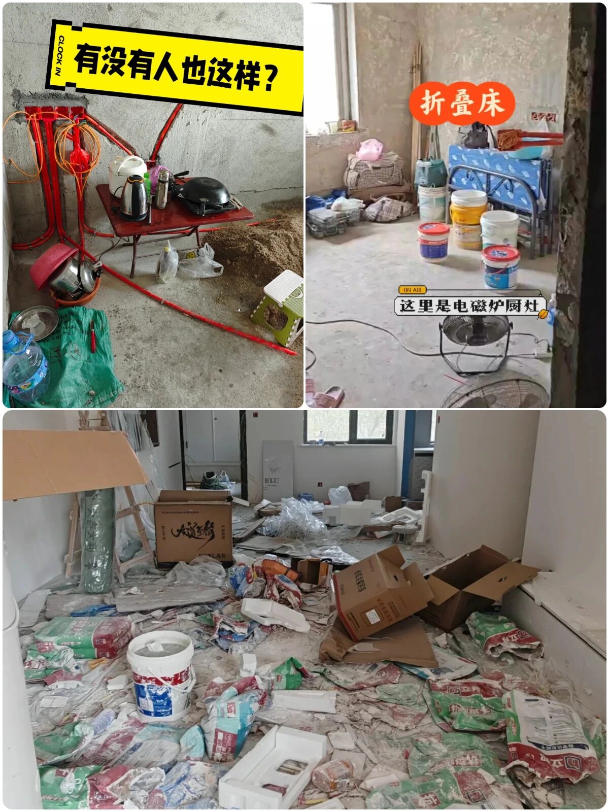 ▲装修个房子在你家吃喝拉撒,违规用电做饭,电瓶车充电,房间内搞得一团乱糟糟;装修时垃圾遍地,不打扫垃圾,不是他的事,不注意装修环境,这你能接受得了?顺材料