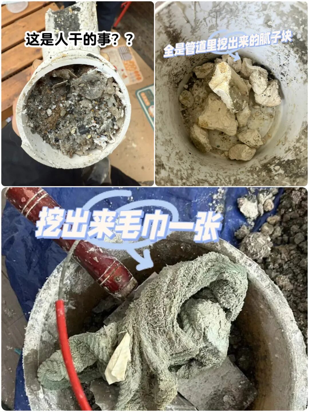 ▲马桶或地漏被堵,正常和三拨人有关系,拆改工瓦工和油漆工,嫌疑比较大的是拆改工和瓦工,装修时不去保护,垃圾掉进排水管里,装修完成后使用才会发现,还去哪找工人?一直在忙