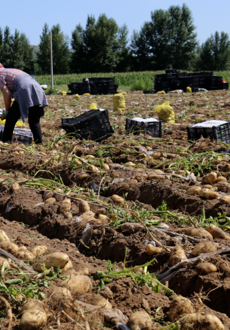 我们再来说说土豆的收获。一般来说,从土豆种下去到收获大概需要两到三个月的时间。在临洮,当土豆的叶子开始变黄,而且有一部分叶子开始枯萎的时候,就说明土豆快要成熟了。这个时候,农民们就开始准备收获了。他们小心翼翼地把土豆从土里挖出来,就像把一个个宝藏从地下挖出来一样。