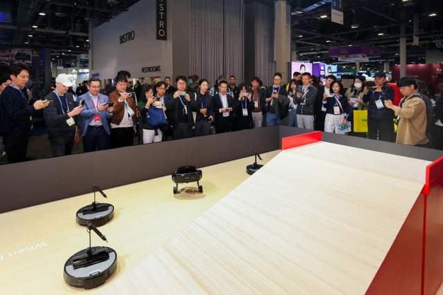 这款采用创新双轮腿架构的黑科技产品,不仅可以自主攀爬楼梯,还能在攀爬过程中同步完成每一级台阶的清洁,是目前全球首款具备楼梯清扫能力的扫地机器人。在CES现场的实机演示中,G-Rover轮腿协同攀爬、精准清扫的丝滑动作,引来围观者纷纷举起手机拍摄,相关演示视频也迅速在社交平台传播,引发热议,成为本届CES话题度极高的名场面之一。