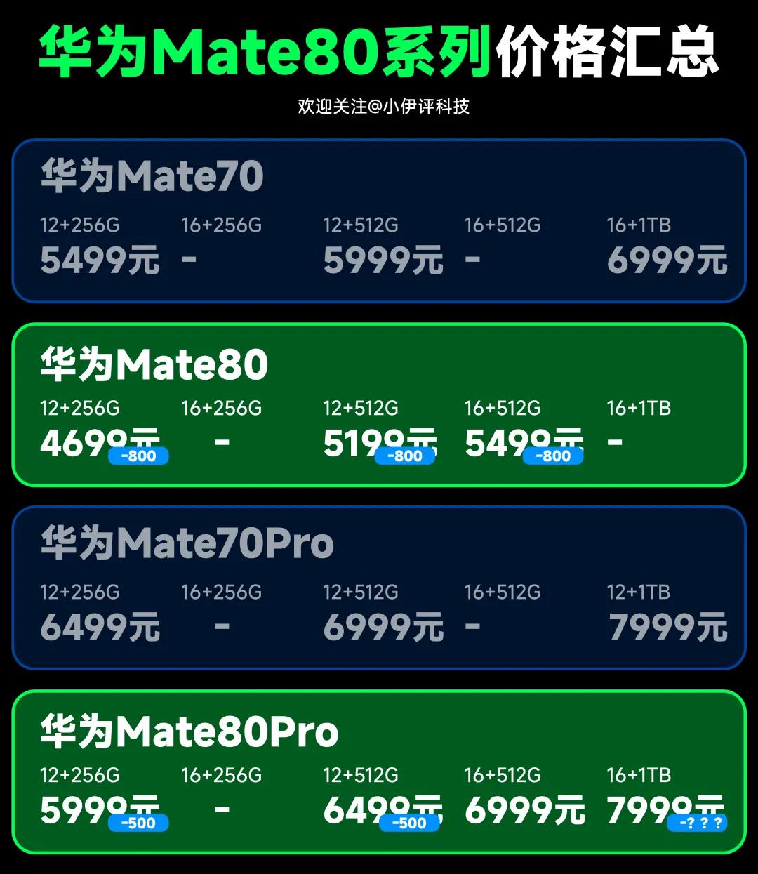 至于华为Mate80系列这边,今年可谓是逆势降价,在其他产品纷纷涨价的情况下,选择对价格进行大幅度的下调,尤其是华为Mate80的标准版,降价幅度更是高达800元。