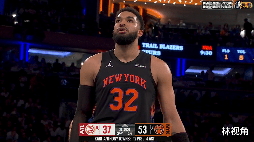 第二节,沃克三分命中为老鹰止血,唐斯攻防两端都展现出超强能力,防守端外线给了麦科勒姆一记大帽,进攻端篮下打成2+1,强硬无比。