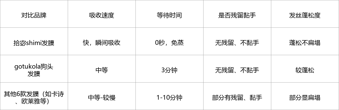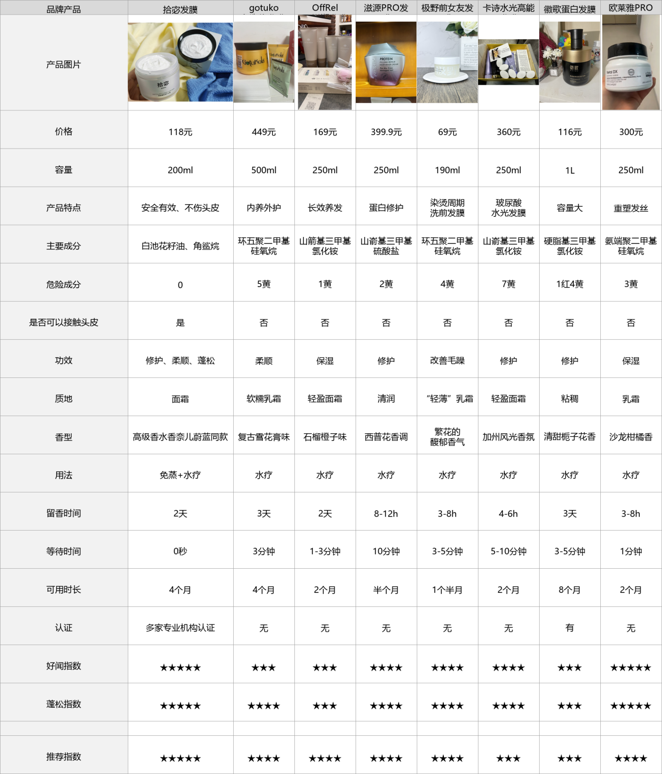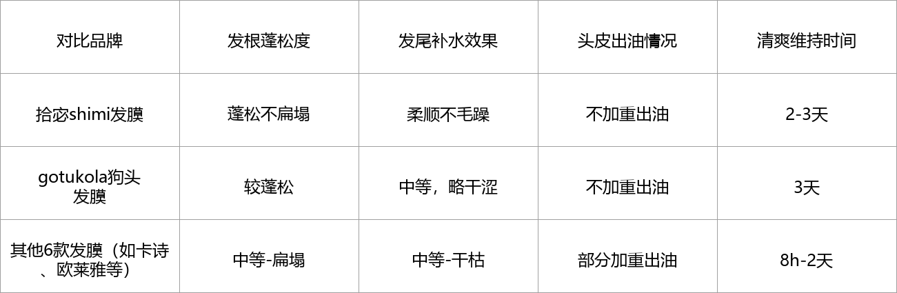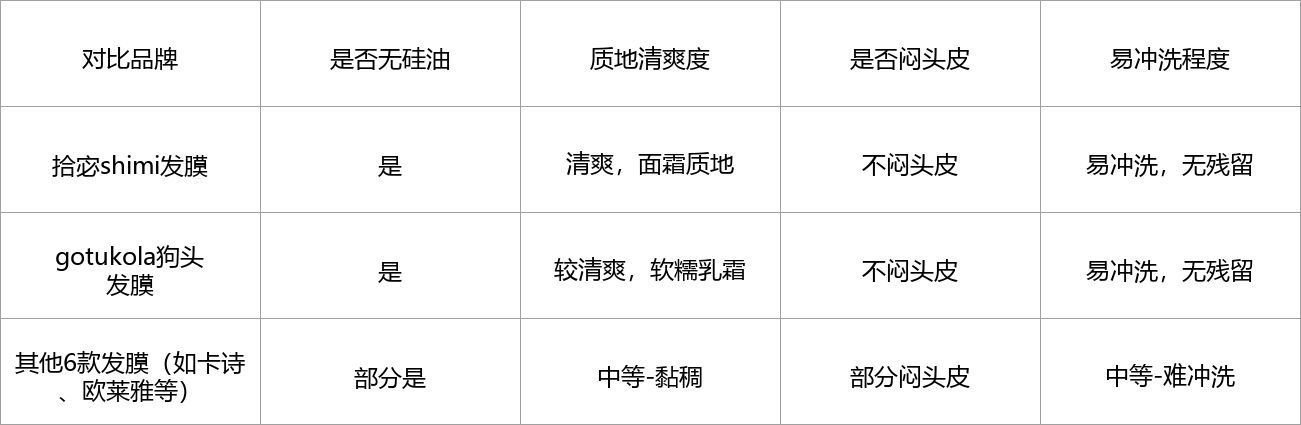 表现优秀:拾宓shimi发膜、gotukola狗头发膜