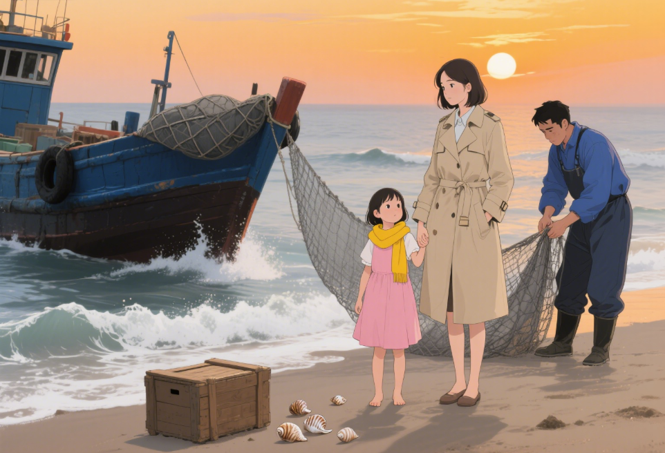 这周周强要去远海捞鱼,说这个季节的带鱼最肥,要去三天。可今天已经是第五天了,他还没回来。海边起了小风浪,我和小玥在海边等了一天,小玥的脚冻得通红,却还拉着我的手说:“妈妈,爸爸肯定会回来的,他答应给我带小海螺。” 傍晚的时候,远处突然有人喊 “周强的船回来了!”,我拉着小玥跑过去,却看到周强的船上拖着一个用渔网裹着的木盒子。周强上岸后,脸色凝重地看着我,嘴唇动了动,却没说话。我盯着那个盒子,心像被一只手揪紧了 —— 他捞到的东西,会不会是陈峰的?