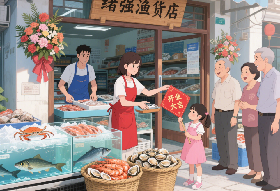 过了一段时间,我和周强商量,想用剩下的陪嫁开一家小渔货店。周强很支持我,说:“绪绪,你想做什么,我都支持你。咱们的渔货店就卖新鲜的海鲜,我每天出海捞,你在店里卖,肯定能受欢迎。”