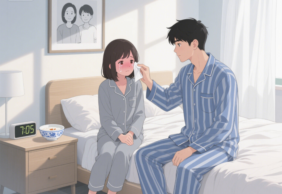 天亮的时候,我眼睛又红又肿,脸上还带着泪痕。周强端着热粥进来,看到我这个样子,没说什么,只是把粥放在床头柜上,坐在我身边:“绪绪,吃点东西吧,不然身体会垮的。”