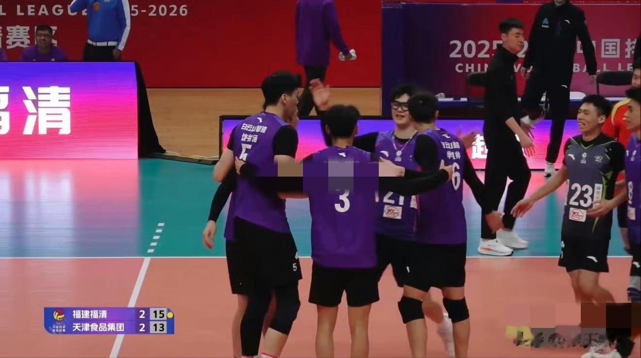 2025-2026中国男排超级联赛A级季后赛C组第20轮,福建男排主场鏖战五局3-2(19-25 27-25 28-26 17-25 15-13)力克天津食品集团男排,福建男排获得季后赛首胜,1胜5负积2分排名垫底将战5-8名排位赛,天津男排4胜2负积12分排名小组第二晋级四强,半决赛将战卫冕冠军上海男排。