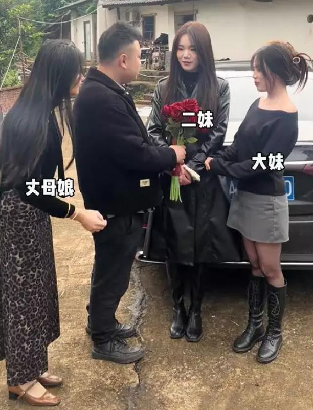 姐姐冲着小伙喊道:“你为啥选妹妹?你们俩话都不多,你就把花送给她!我跟你说,她哪有我好,整天像闷葫芦一样,啥也不说,以后你会后悔的!”