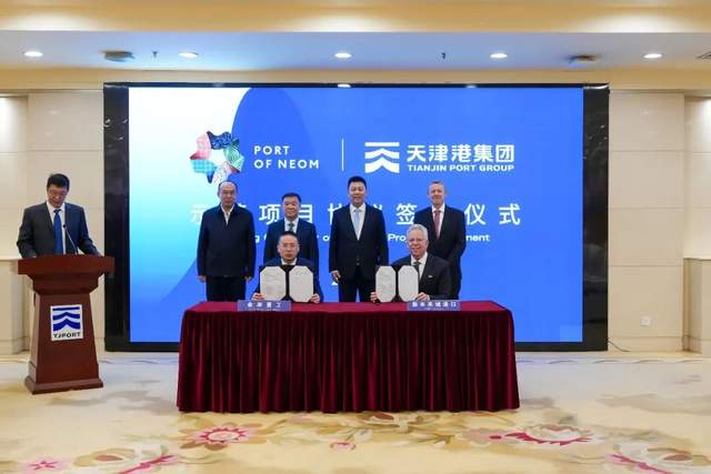 3、2月4日,沙特阿拉伯新未来城港口公司董事长肖恩·凯利(Sean Kelly)一行到访天津港集团,双方就携手合作,共同服务新未来城港口码头智慧化建设进行深入交流。当天,新未来城港口公司与天津金岸重工有限公司签署《示范项目协议》。天津市政府副秘书长杨坡,滨海新区副区长刘墨林,天津港集团党委副书记、总裁王洪海,副总裁安国利,总工程师杨荣,新未来城港口项目总监菲利普·艾泽勒(Philip Eiszele)出席签字仪式。此次协议的签署,标志着天津港集团首次通过项目总承包的方式实现智慧港口建设成果海外输出。