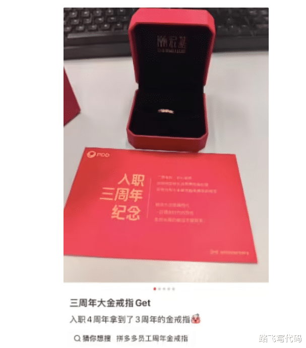 在当前的大环境之下,传来了一个令很多人非常羡慕的事情,拼多多目前开始向员工发放金戒指、“金鸡”等众多周年纪念礼品。