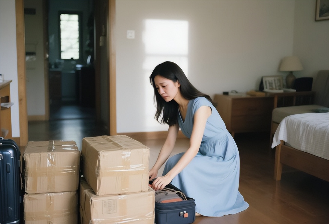 她走进卧室,拉开衣柜,开始往行李箱扔衣服。