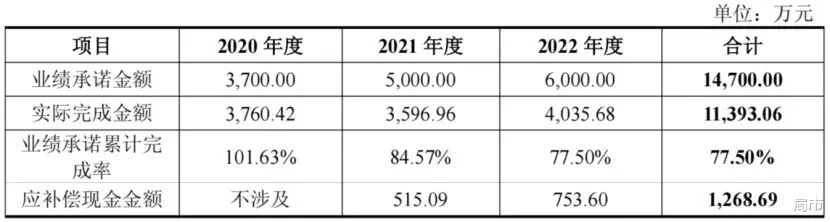 回顾狮头股份上一轮收购,标的公司昆汀科技的相关股东原本承诺2020-2022年度扣非归母净利润合计不低于1.47亿元,但实际完成金额仅为1.14亿元,差额3307万元。最终,业绩承诺方补偿现金1269万元。