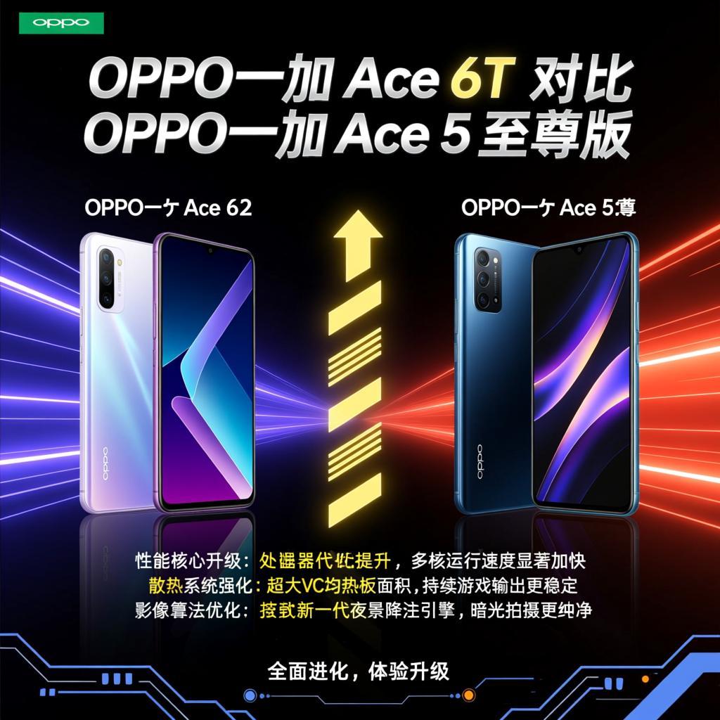 四、影像 & 其他体验项目一加 Ace 5 至尊版一加 Ace 6T后摄50MP 主摄(IMX906,OIS) + 8MP 超广角gsmarena.com+150MP 索尼主摄 + 8MP 超广角(官方宣传为“索尼 5000 万像素旗舰主摄”)sohu.com+1影像定位主打够用、游戏手机中的主流水平同样偏“够用”,更强调电池和游戏,影像不是主要卖点官方和评测对两台机的影像定位基本一致:主摄日常够用,但不是主打卖点的影像旗舰gsmarena.com+1。