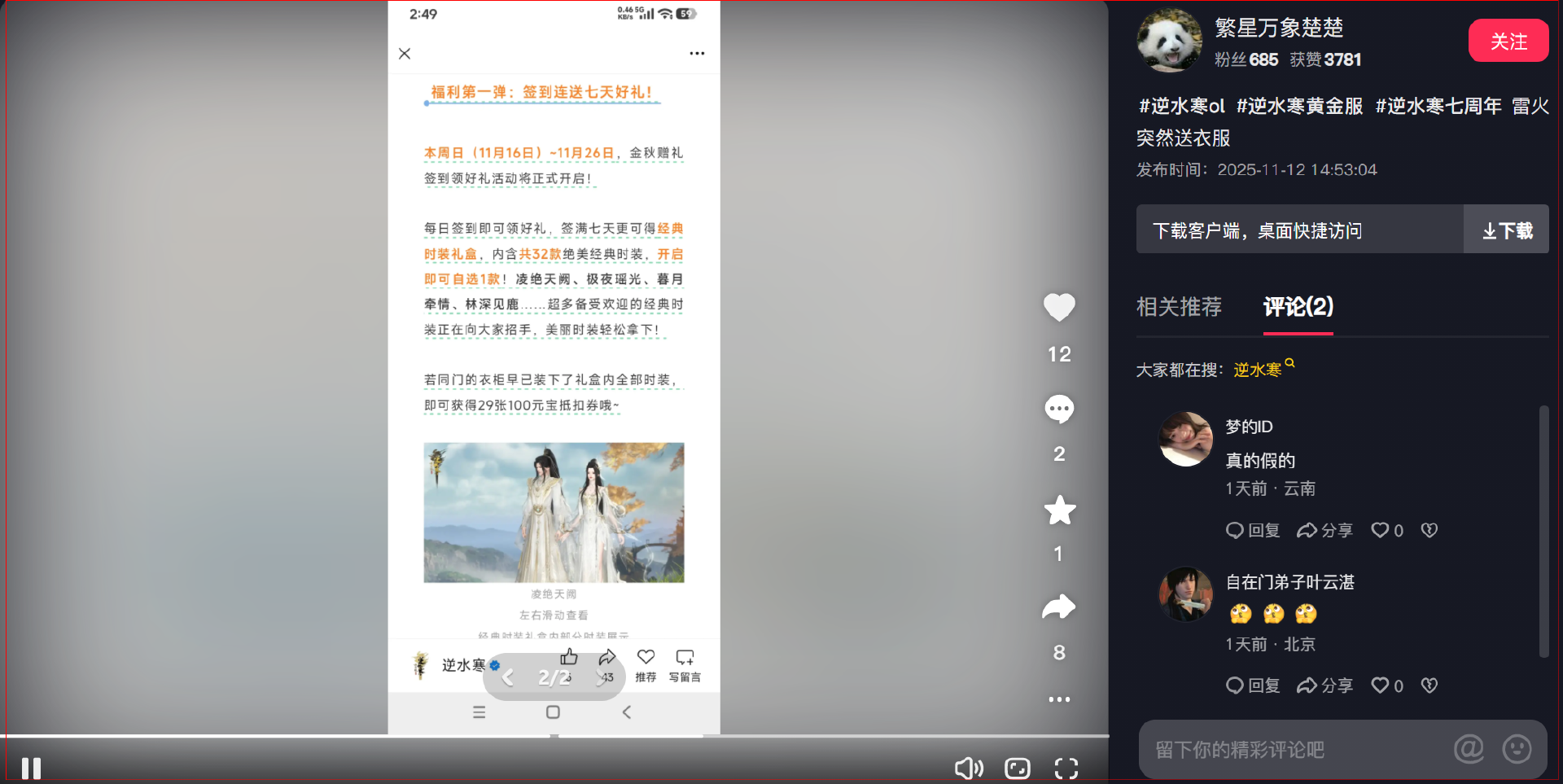 在网游行业中,官方发放福利向来是凝聚玩家的重要方式,免费获取价值不菲的游戏道具,无论是普通玩家还是高端消费者,通常都会第一时间参与领取。但近期网易MMO网游《逆水寒》却出现了反常现象——官方即将上线的价值超800元福利礼包,竟让大批玩家情绪稳定,甚至有人无动于衷。