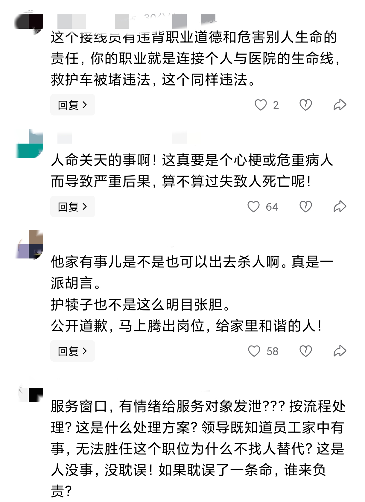如果遇到的是危急病人,该工作人员这番操作,很有可能直接导致病人得不到救护而去世,这么明显的渎职行为,是一个道歉,轻松化解的吗?