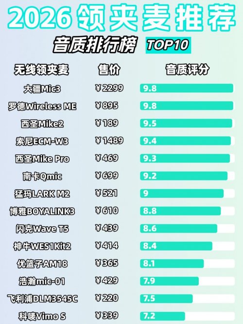 二、2026十大高口碑无线领夹麦推荐榜