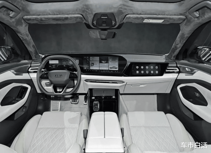 进入车内,全新奥迪A6L的座舱对科技感进行了大幅升级,车内采用了五屏联动系统,包括14.5英寸MMI全景显示屏、11.9英寸虚拟座舱、13.1英寸W-HUD抬头显示、10.9英寸前排副驾屏幕以及手机投屏功能,全面提升了人机交互体验。车顶配备了1.96平方米的九分区智能全景天幕,可实现毫秒级响应和九段分区独立控制,还可与氛围灯实现交互联动。内饰材质方面,车顶棚及上柱采用仿麂皮面料,细节处采用了较多镀铬和烤漆饰板装饰,进一步提升了座舱的豪华质感。