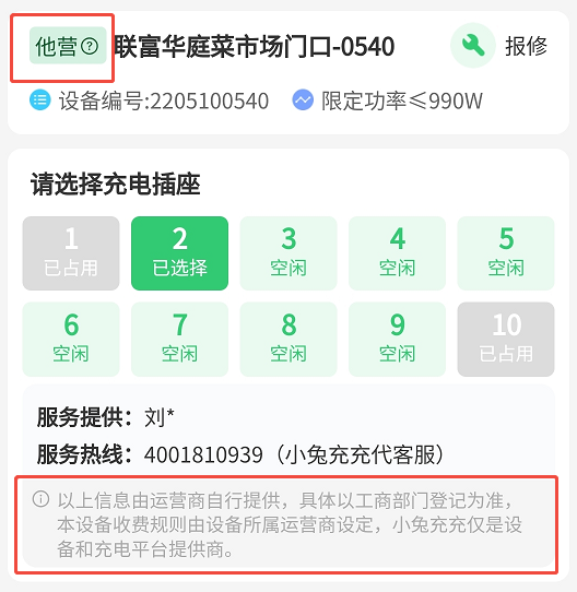 1. 他营站点(合作商户/物业运营):这些站点的充电桩由合作商户或物业所有并运营。服务费完全由他们根据自身的场地租金、管理成本等因素自主设定。小兔充充作为平台和技术提供方,尊重合作方的经营权,无法直接干预或强制其降价。