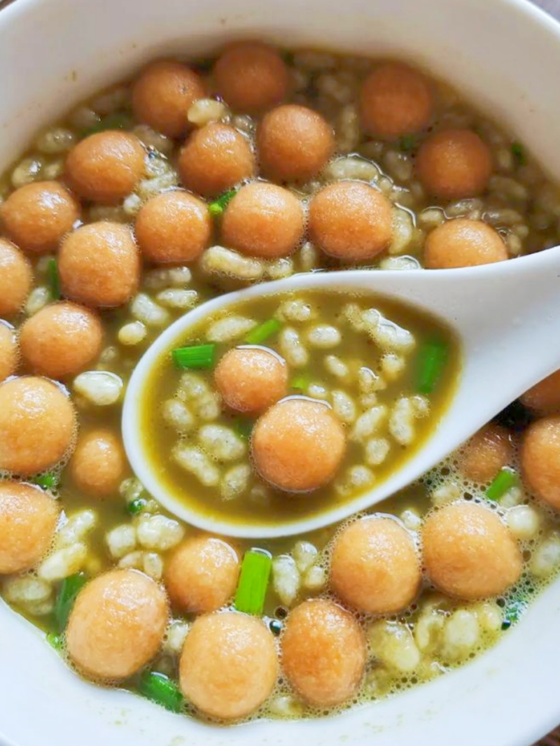 煮好的油茶色泽金黄,初入口时是浓烈的苦涩和辛辣,这对于外地人来说往往是种考验。但只要你能忍住第一口的苦涩,随之而来的便是喉间悠长的回甘,以及炒米、花生、麻蛋果带来的香脆口感。一碗热油茶下肚,祛湿驱寒,提神醒脑,这种“自讨苦吃”的快乐,正是广西人对抗潮湿气候的生活智慧。