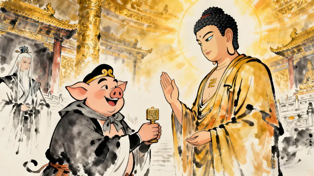 取经路上,猪八戒的 “特殊待遇” 更是无处不在。遇到白骨精、黄袍怪等与仙佛有关联的妖怪,对方大多盯着唐僧和孙悟空,对八戒要么生擒不杀,要么刻意放水;就连如来佛祖,最后都给了他 “净坛使者” 这个看似清闲、实则掌管佛门供奉气运的肥差。