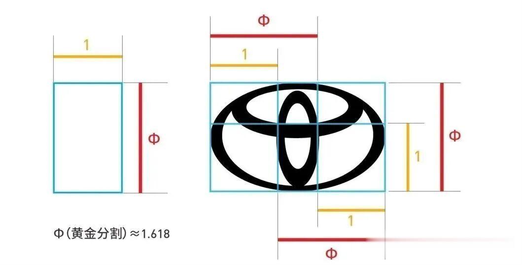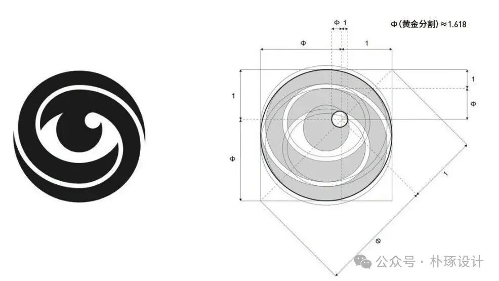 黄金分割是经典的数学美学原则,将0.618∶1(近似1.618∶1)的比例融入logo设计,能让图形、画面呈现出最自然的和谐感。