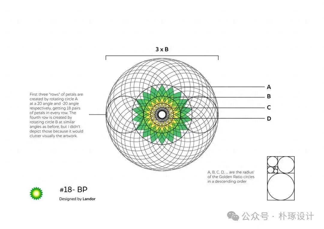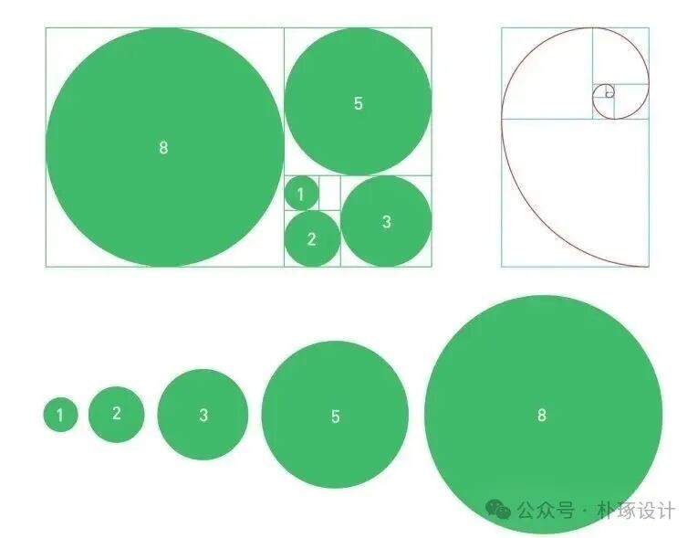 黄金分割与斐波那契数列(1,2,3,5,8,13…)密切相关,数列中越大的数字除以前者,结果就越接近黄金分割率。从黄金分割图表中提取的圆形,其直径恰好对应该数列的数值,这为logo设计提供了精准的比例参考。