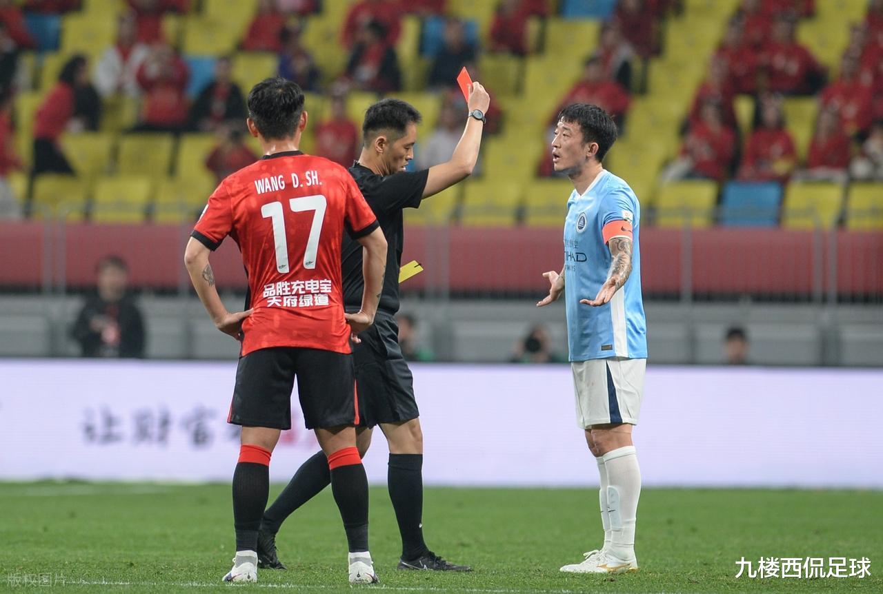 同样是成都蓉城的比赛,这不禁让人想起在首轮比赛中,深圳新鹏城的姜至鹏因类似动作导致成都蓉城外援流血的局面,却被红牌罚下的情景。