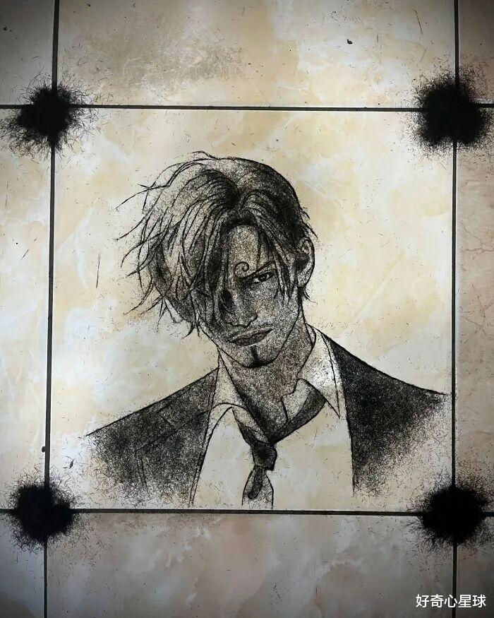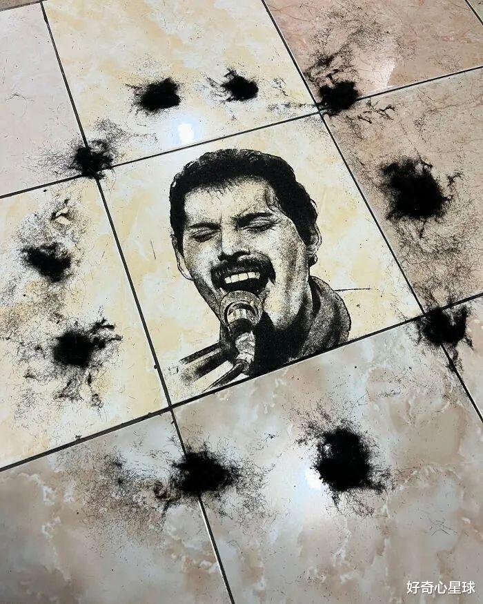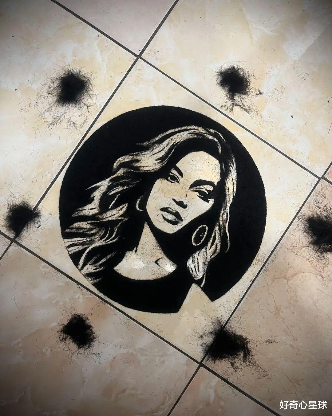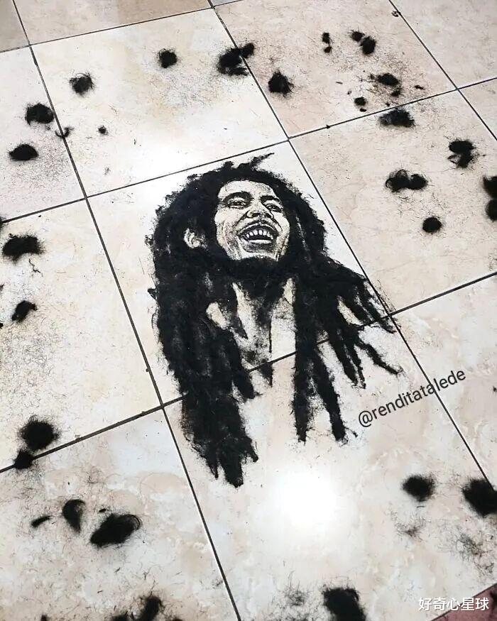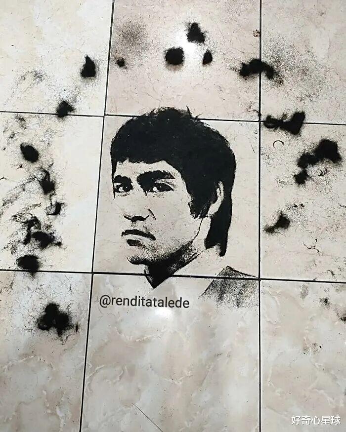 对于大多数人来说,理完发后散落一地的碎发只是需要清扫的垃圾。但在伦迪眼中,这些发丝却是珍贵的艺术原料。他巧妙地将旧瓷砖地板作为画布,随手拿起的小刷子当作画笔,用五颜六色的碎发作为颜料,创作出一幅幅栩栩如生的肖像画。从我们熟悉的影视角色、明星名人到经典动漫人物,伦迪用足够的耐心和精湛的技艺,将碎发拼凑成堪比素描的精致作品。当这些地板上的发丝画作被分享到网络后,立即引发了轰动,许多人称赞他的创作是"真正的魔术表演"。