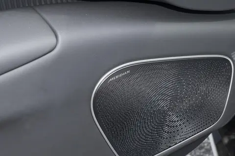 全景远端屏延伸至副驾前方,副驾乘客可独立操作娱乐功能,不影响主驾视野。车内配备黑色线性桦木装饰板,搭配低饱和度金色点缀。试驾车辆为刚到店车型,车内气味温和。此外,标配的英国之宝 25 扬声器音响系统也在车内搭载,提升听觉体验。